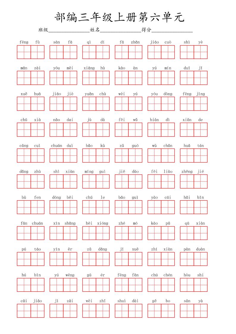 三年级上册语文期中复习1-4单元重点必考词语、句子汇总1