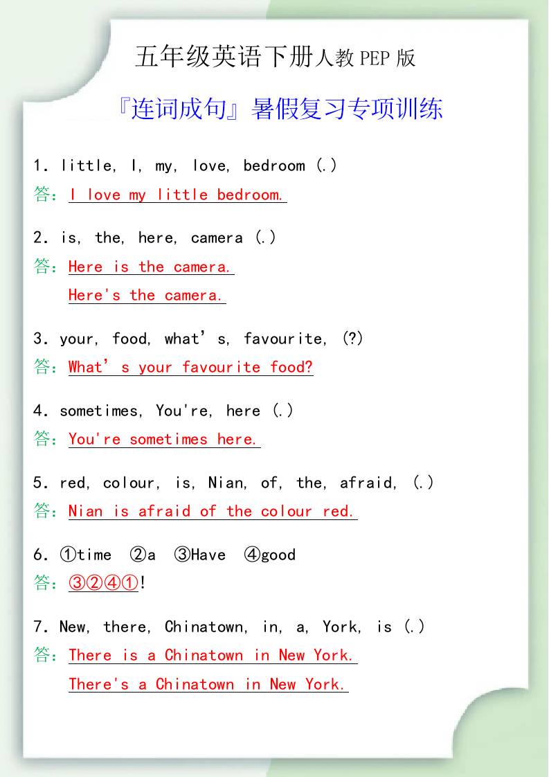 五年级英语上册第一单元重点知识归纳,暑假预习