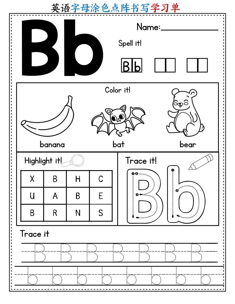 二升三暑假英语字母涂色点阵书写学习单26页-三上英语
