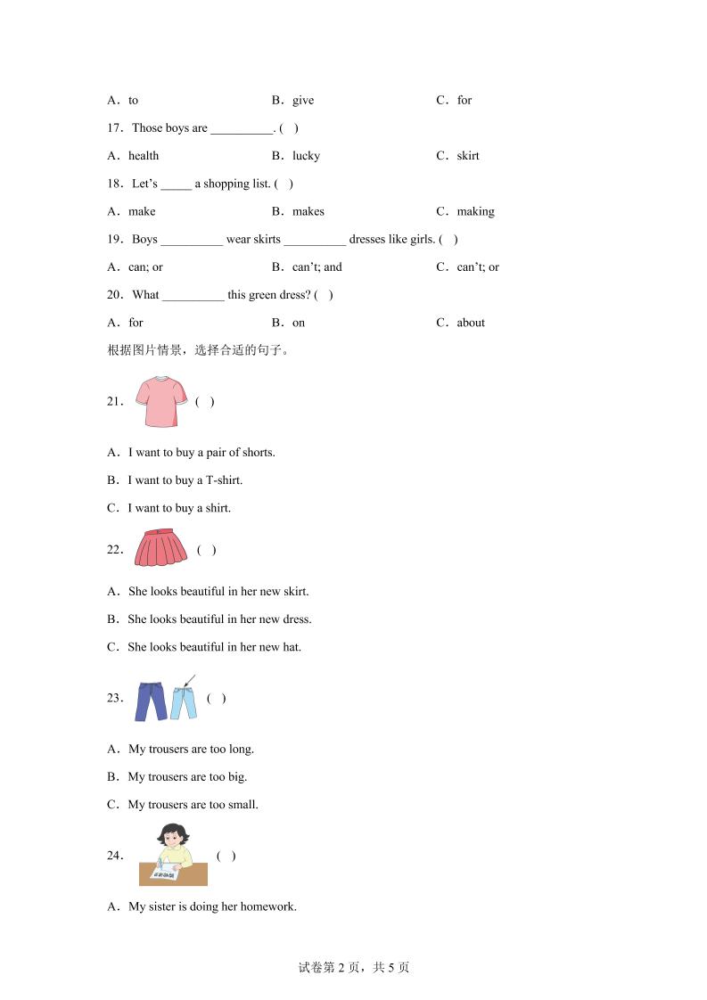 首页 > 全部 > 六年级 > 闽教版英语六年级上册Unit4PartB练习卷