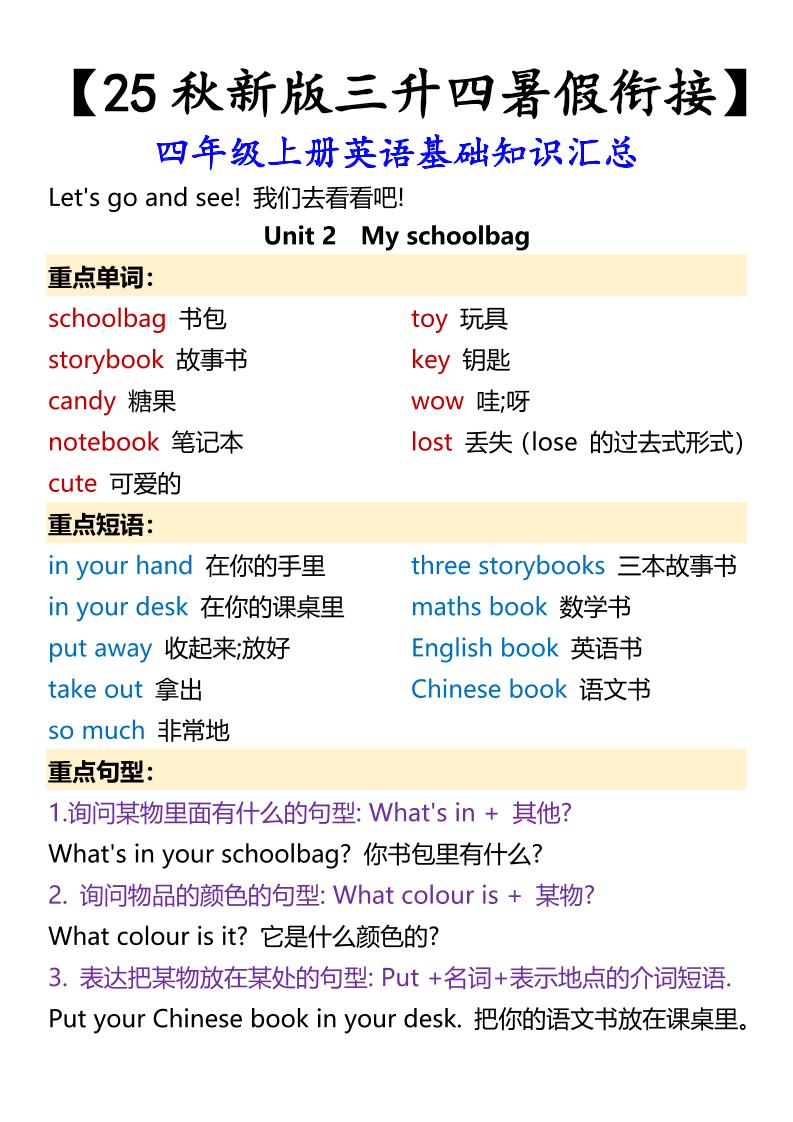 首页 > 全部 > 四年级 > 【2025秋新版】四年级上册英语基础知识汇总
