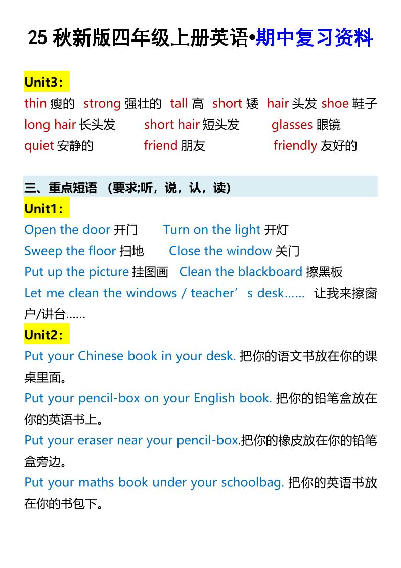 首页 > 全部 > 四年级 > 【2025秋新版】四年级上册英语•期中复习资料
