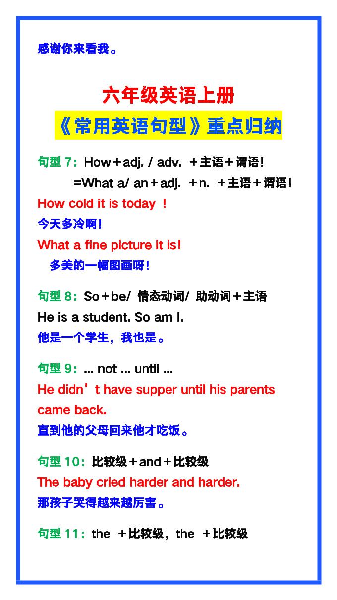【2025秋新版】六年级英语上册《常用英语句型》重点归纳,提分必备!