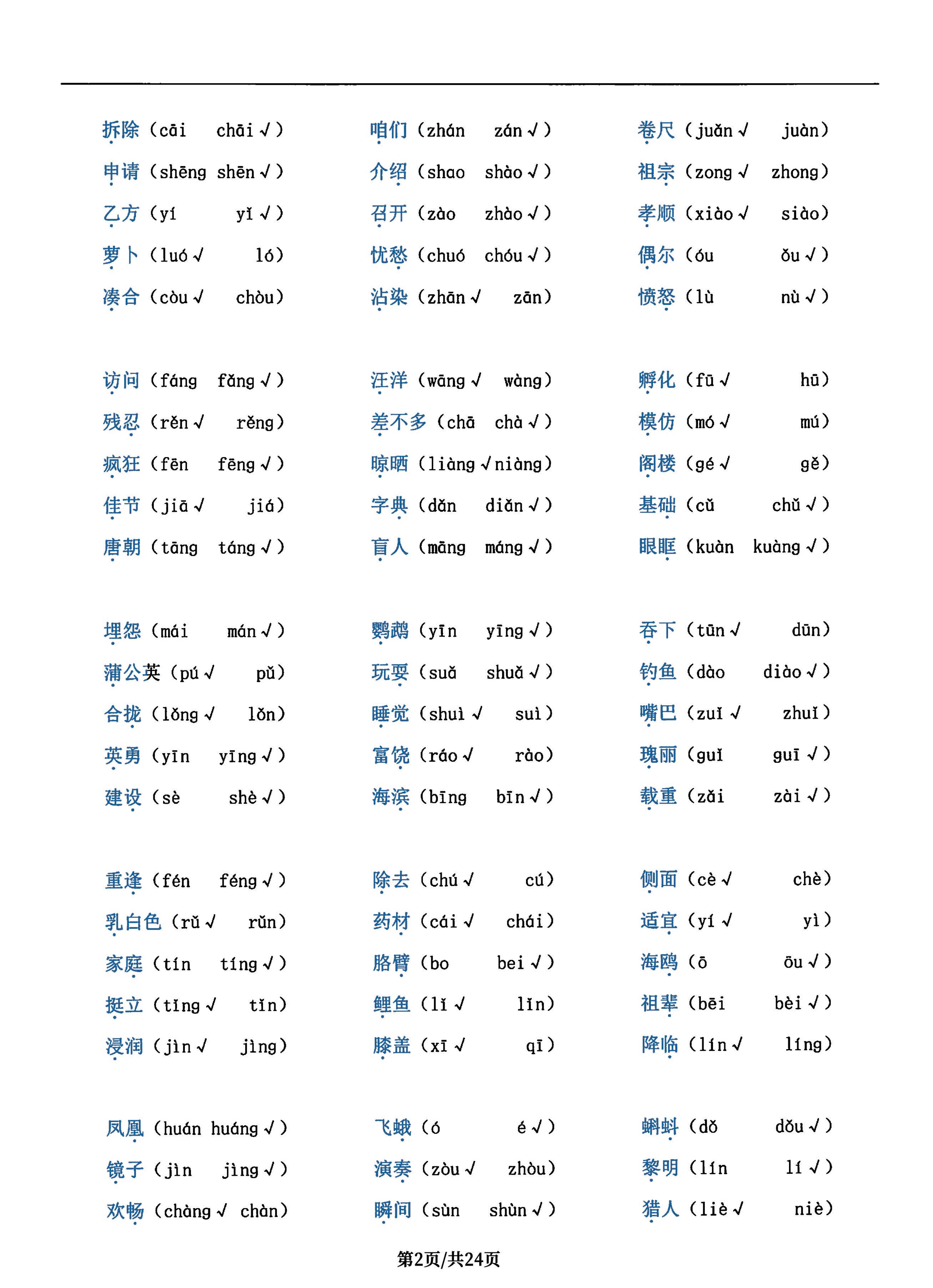 三年级语文上册总考点清单,史上超全24页!