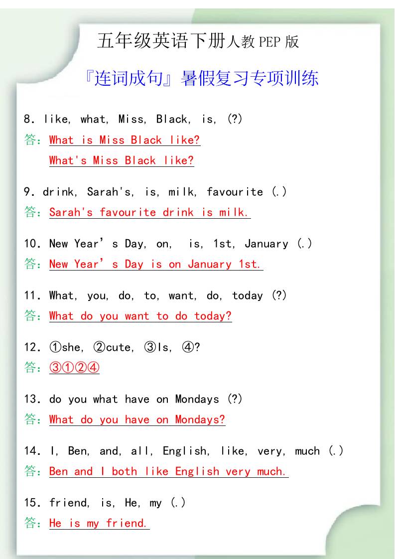 首页 > 全部 > 五年级 > 五年级英语下册『连词成句』暑假复习专项训练
